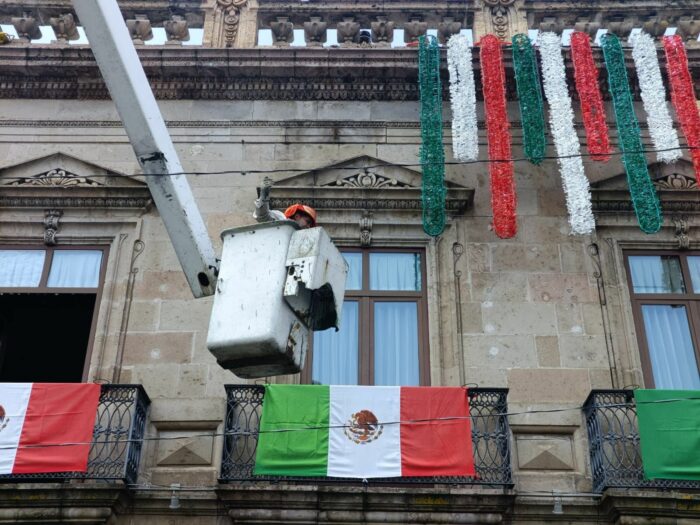 Alrededor de 250 adornos patrios han comenzado a colocarse en el Centro Histórico y diferentes puntos estratégicos de Morelia, mismos que permanecerán iluminados durante todo el mes de septiembre.