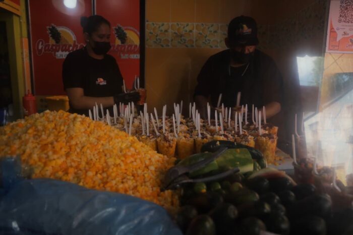 El gaspacho, uno de los antojitos más representativos de la capital michoacana, está elaborado a base de frutas picadas, queso rallado, cebolla y jugo de naranja, con un toque de chile en polvo.