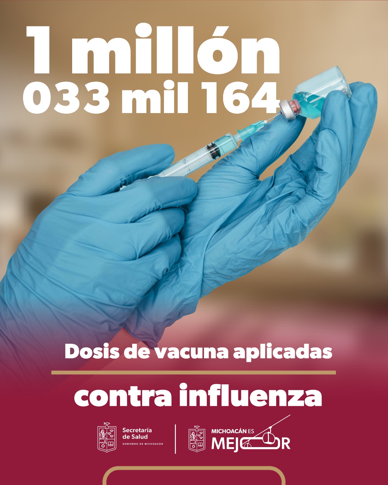 La Secretaría de Salud de Michoacán (SSM) informó que se han aplicado un millón 033,164 dosis de la vacuna contra la influenza estacional en todo el estado, como parte de la Campaña de Vacunación para la Temporada Invernal 2025-2026.